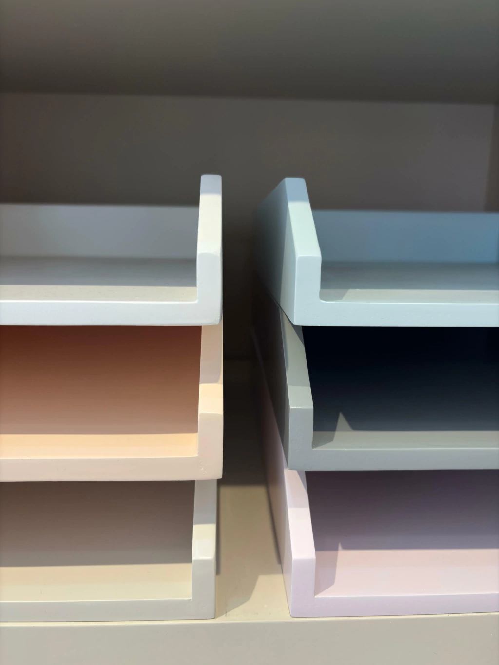 Estas bandejas apilables permiten clasificar papeles y documentos con facilidad. Son ideales para escritorios, manteniendo el orden y sumando un detalle de color al espacio de trabajo.