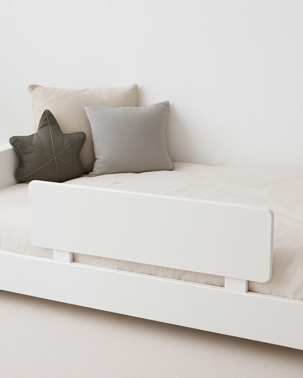 Baranda de seguridad, diseñada para brindar protección y acompañar el descanso de los más pequeños. Su tamaño compacto la hace práctica y funcional, fácil de colocar atornillada.