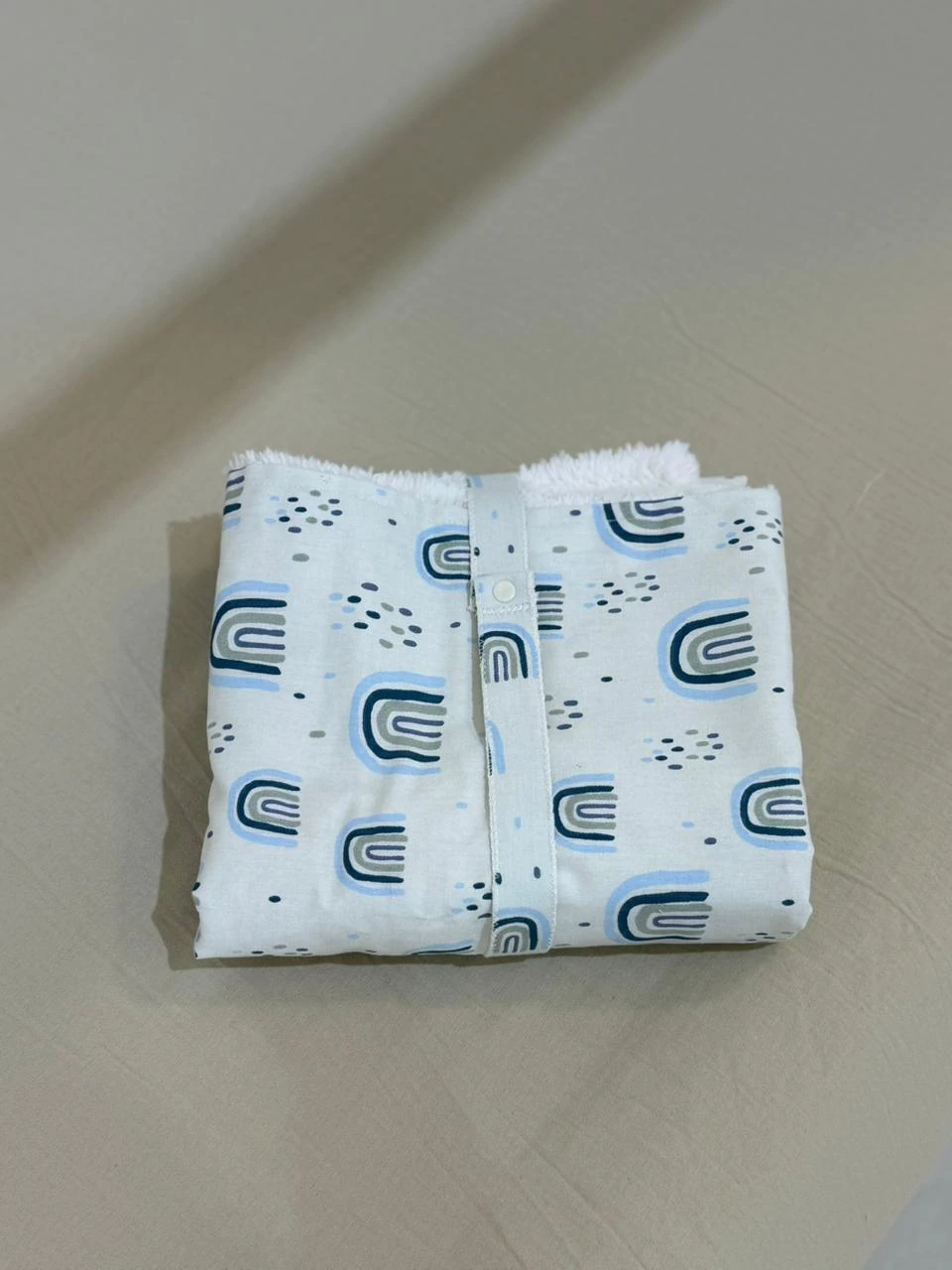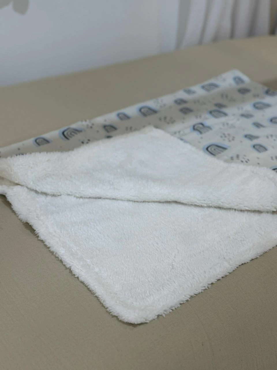 Suave y abrigada, esta manta recibidora con interior de corderito es perfecta para envolver al bebé con calidez y confort. Ideal para usar en cochecito, cuna o como manta de abrigo en cualquier momento.
