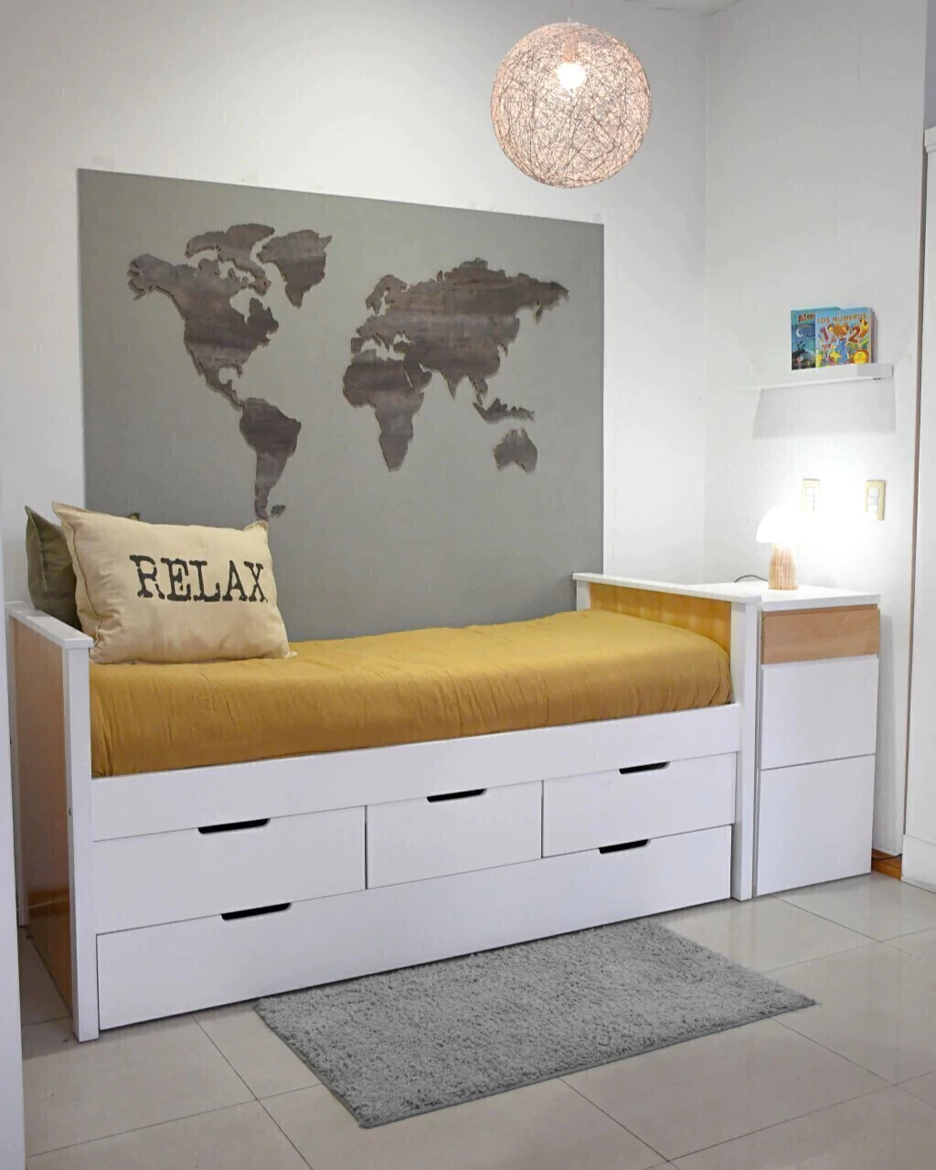 Una opción ideal para optimizar el espacio. Esta cama alta combina funcionalidad y diseño, con un toque cálido gracias a sus terminaciones en madera natural de haya o caoba. Diseñada para colchón de 80 x 190 cm y altura recomendada de hasta 20 cm. Incluye cama inferior para visitas y cajonera de guardado bajo cama. Colores disponibles: beige, gris y rosa.